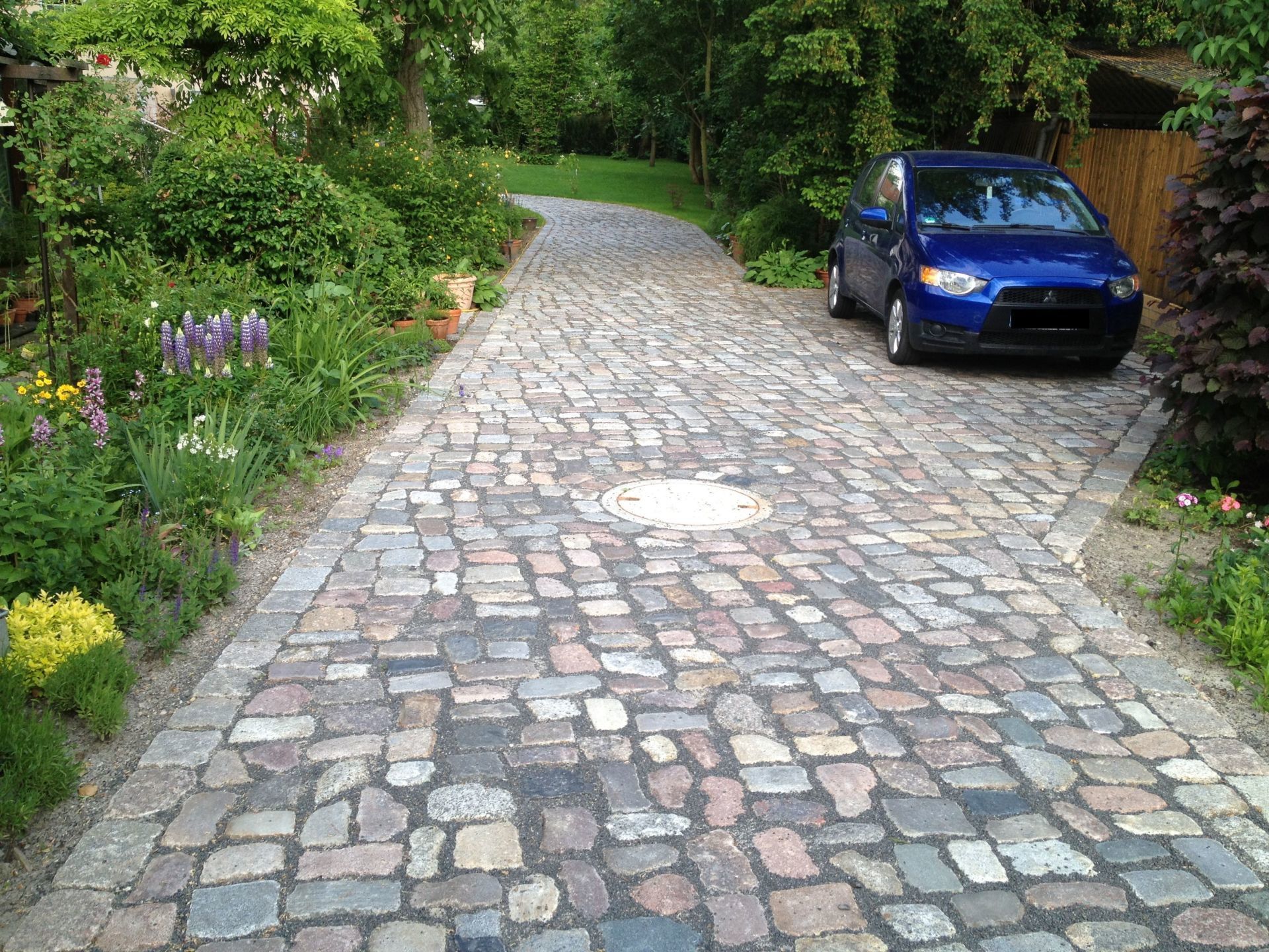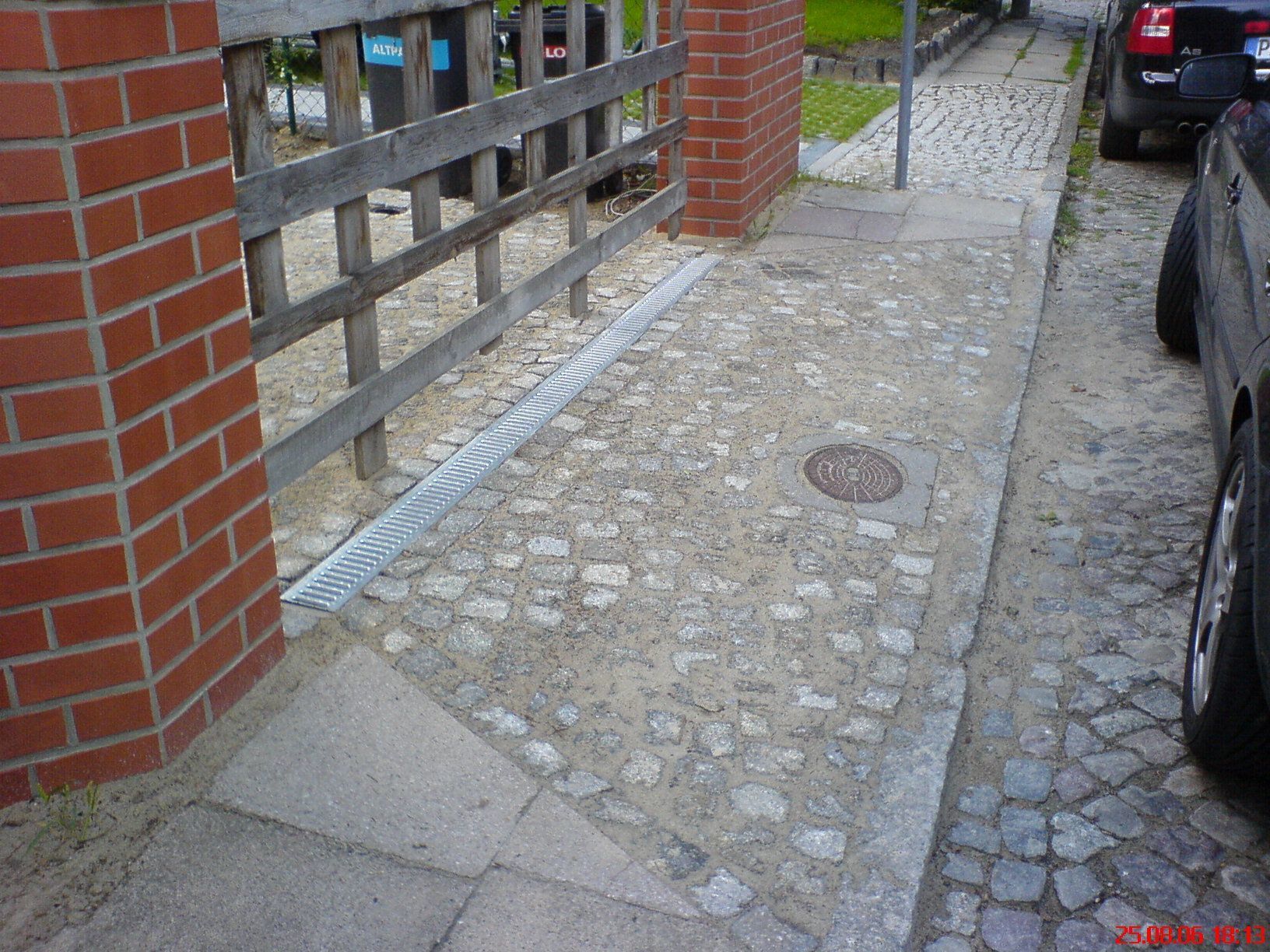 Bei vollflächigen Zufahrten wird der gesamte Fahrweg ausgepflastert. Dies führt zu einem hohen Materialbedarf und einer starken Flächenversiegelung. Daher sind für diese Zufahrten geeignete Entwässerungen vorzusehen.